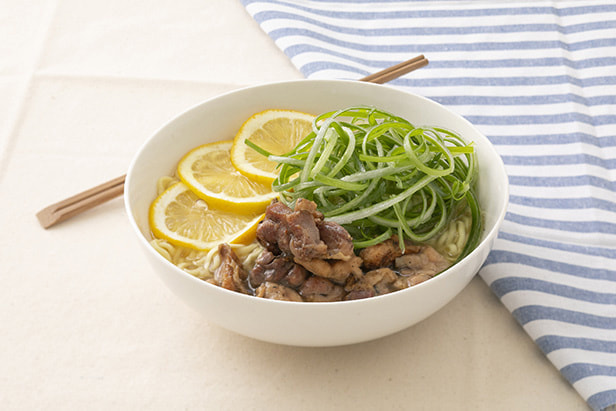 2.その上にスライスレモンと温めた鶏炭火焼を乗せれば完成です。